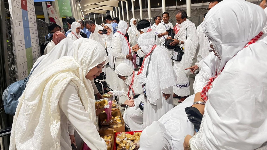 "Lumayan buat ngemil mbak," ujar Himmah, jemaah asal Jawa Tengah yang tampak senang menemukan makanan khas Indonesia di tanah suci.