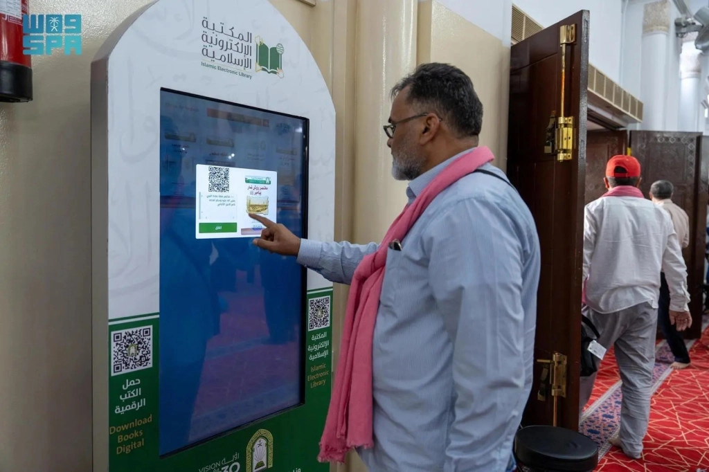 Sementara itu, cabang Dakwah dan Bimbingan di Madinah juga menyiapkan layanan serupa. Layar perpustakaan elektronik kini tersedia di sejumlah masjid besar, menampilkan lebih dari 2.000 slide edukasi dan lebih dari 1.000 konten berbentuk tulisan, audio, dan video dalam 51 bahasa dunia.