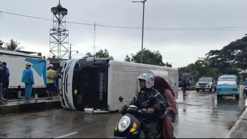 HIMPUHNEWS - Perjalanan rombongan jemaah umrah asal Polewali Mandar menuju Bandara Sultan Hasanuddin, Makassar, mendadak kacau setelah bus yang mereka tumpangi terguling di Jalan Poros Pangkep–Barru, Sulawesi Selatan, Senin (24/11/2025) siang. Insiden itu membuat dua penumpang mengalami luka ringan.