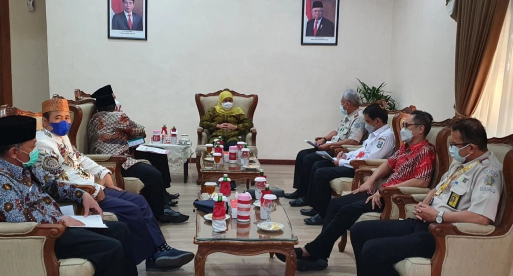 Himpuh - Surabaya (28/9) | Himpuh diwakili oleh Koordinator Wilayah Jawa Timur-Bali-NTB-NTT, M Amsor Alamsyah, beraudensi dengan Gubernur Jawa Timur, Khofifah Indar Parawansa dalam rangka membahas kelangkaan Nasional vaksin Meningitis, khususnya untuk kebutuhan jamaah Umrah asal Jawa Timur.